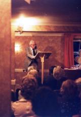 The Rt Hon. Michael Foot PCMichael Foot who died in March 2010, was a regular lecturer at the Wordsworth Summer Conference. A leader of the Labour Party, and a scholar of Swift, Hazlitt and Byron, he was always a popular and welcome friend. He is pictured here in the 1980s, after a reading of 'Michael' in Greenhead Ghyll (with him at the front of the picture are Robert Maniquis, Pamela Woof, and Duncan Wu). And below, walking around the lake, pursued by the media, and at the podium. Michael's lectures were punctuated by periodic verbal jousts on Romantic Jacobinism, with Thomas McFarland, above. | ![]() |